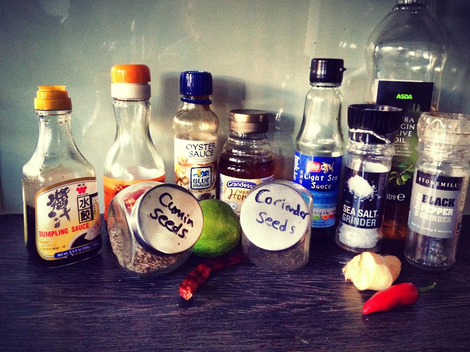 toast the spices in a dry frying pan until they become fragrant then crush together in a pestle and mortar. If you don’t have one just use cumin powder, coriander powder and cilli powder!. Season the steak well with salt and then rub the spices mixture over both sides. The Jamie Oliver recipe uses 5 spice but it can be a bit too strong – this version is more subtle, but give it a go with either. Leave the steaks for about an hour.