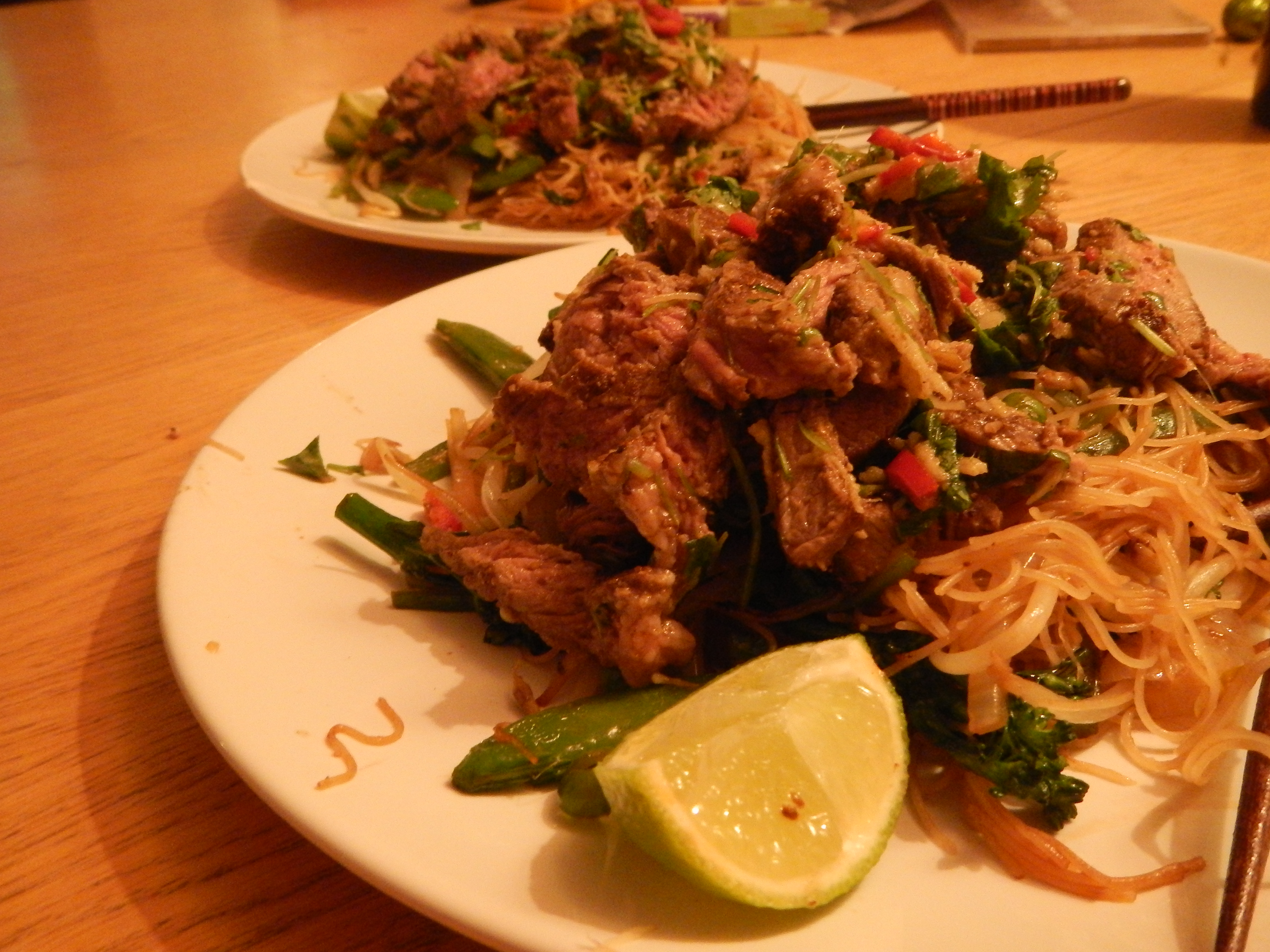 This is a dish that I do slightly different every time though so experiment with it.. change the spice mix, change what you put in the noodles.. just don’t change the type of steak!