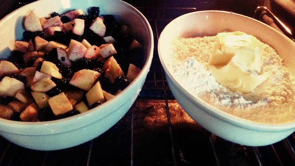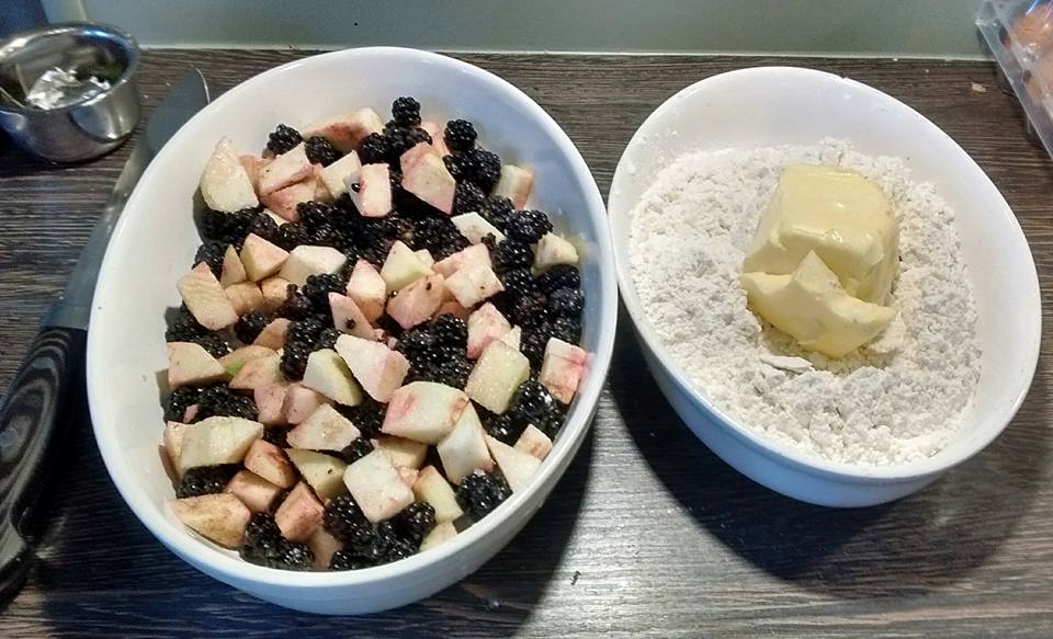 Its an easy option for a dessert really doing a crumble/crump but I am trying to get my 3 year old interested in food and cooking and we can even go and pick the ingredients together for this one which makes it a fun learning exercise with something nice to eat at the end!