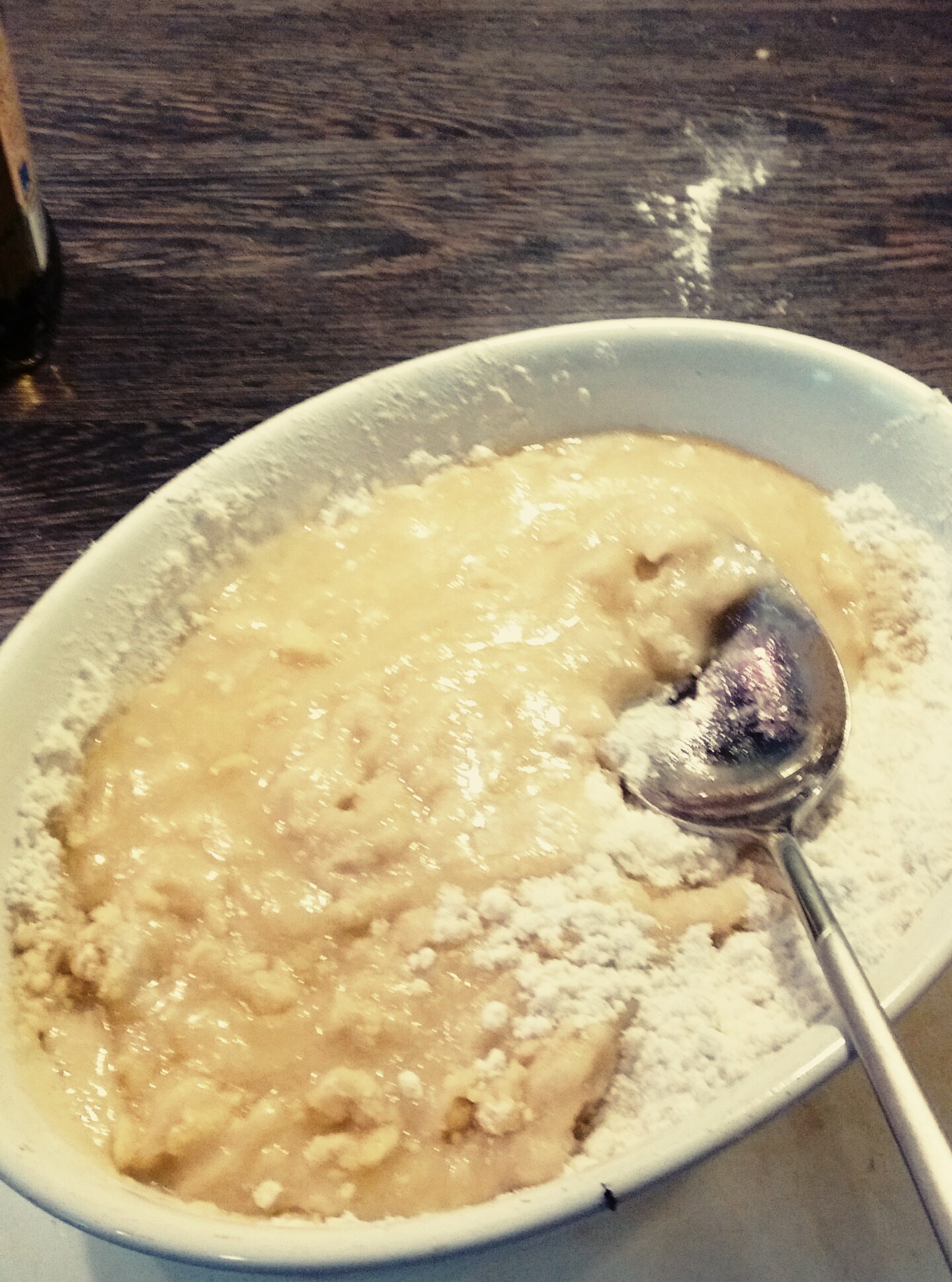 To make the topping there is no need to mix anything up – youneed to put the sugar and flour in an oven proof bowl and place the butter on top and put it in the oven as it is! When the butter melts you then stir it round.