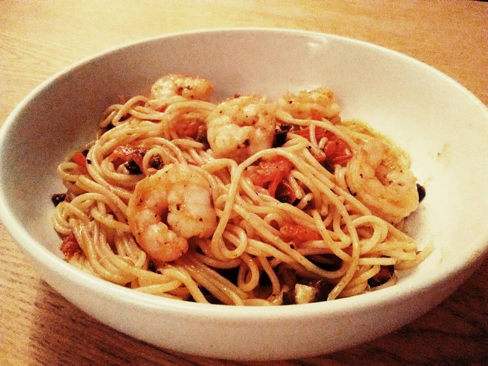 A tasty quick and simple mid week tea that has left a lovely taste in my mouth! You can also have this without the prawns for a nice vegetarian dish. This is a variation of a recipe I read in my Olive magazine.