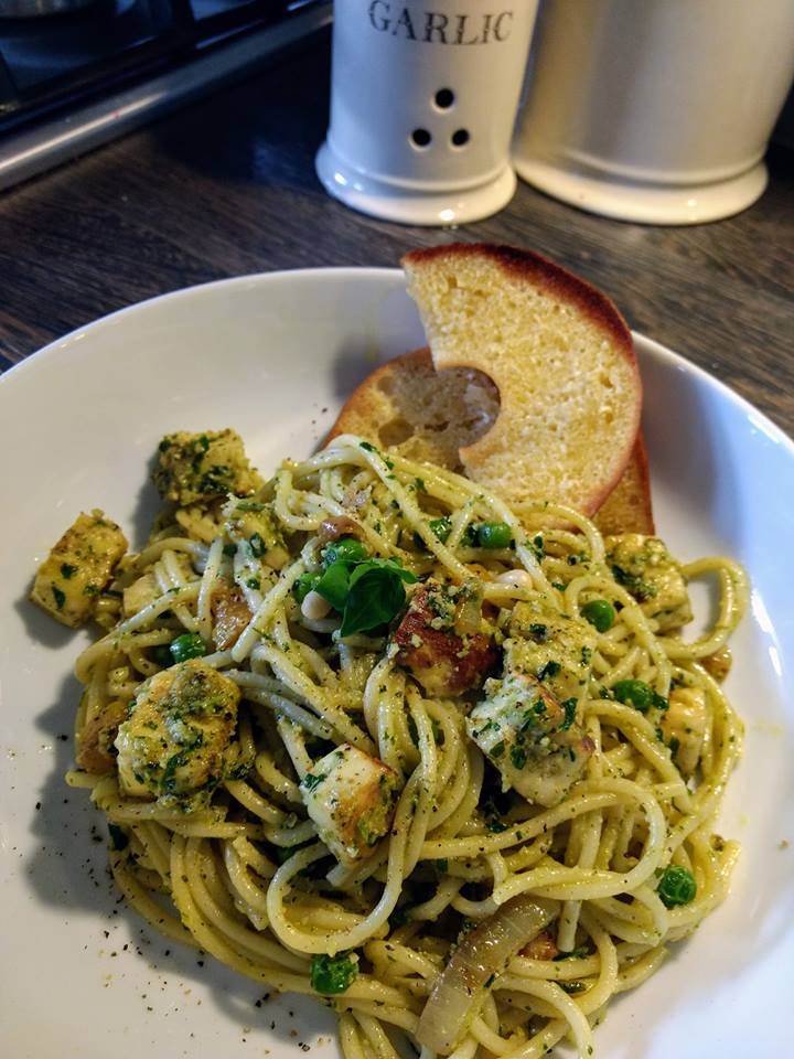 Category: Midweek Meals, Recipes, vegetarian Tags: basil, cheese, comfort food, garlic, halloumi, italian, pasta, pesto, pine nuts, spaghetti