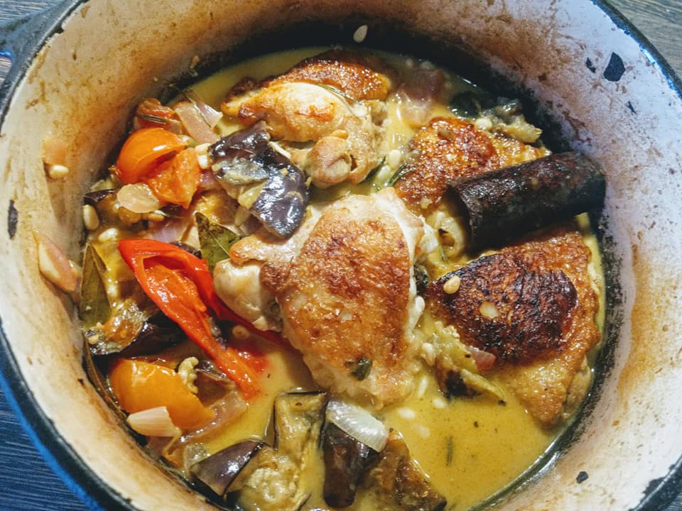 Chicken and Aubergine Stew with Capers and Pine Nuts